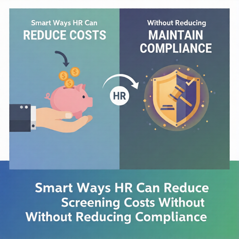 Smart Ways HR Can Reduce Screening Costs Without Reducing Compliance:    It’s 6:30 p.m., and you’re still at your desk. The hiring numbers look good—but your budget doesn’t. Background verification expenses are climbing, finance is asking tough questions, and compliance risks keep you up at night. You want faster hiring, safer onboarding, and cost-effective background checks—but without cutting corners. Sound familiar? For many HR leaders, the tension between speed, safety, and spending feels constant. One wrong hire can cost far more than a screening program ever will. Yet overspending on unnecessary checks drains resources that could be invested elsewhere. The real challenge isn’t choosing between cost and compliance. It’s finding smarter ways to balance both. Because when screening costs spiral—or compliance slips—your entire organization feels the impact. For many HR leaders, the tension between speed, safety, and spending feels constant. One wrong hire can cost far more than a screening program ever will. Yet overspending on unnecessary checks drains resources that could be invested elsewhere. The real challenge isn’t choosing between cost and compliance. It’s finding smarter ways to balance both. Because when screening costs spiral or compliance slips —your entire organization feels the impact. Detailed Issue Exploration: Let’s start with a truth most HR professionals quietly acknowledge: background screening costs don’t rise overnight. They creep up. A new role requires an additional check.A vendor adds a premium service.A last-minute compliance requirement forces urgent processing fees. Before you know it, your screening line item has ballooned—without a clear strategy behind it. Why Screening Costs Get Out of Control One of the biggest reasons organizations struggle with screening cost reduction is over-standardization. Many companies apply the same screening package to every employee—interns, executives, contract staff, and remote freelancers alike. It feels safe. It feels consistent.But it isn’t always smart. Not every role carries the same level of risk. Screening a warehouse associate should not cost the same as screening a CFO. Yet many HR teams use blanket policies because they’re easier to manage. Another factor? Reactive compliance. Instead of proactively designing compliance-friendly checks aligned with regulations, some teams add layers of verification after audits or incidents. This “add-on culture” creates complexity and cost. Then there’s vendor fragmentation. Working with multiple background verification providers often leads to duplicate checks, inconsistent pricing, and hidden administrative expenses. Without centralized oversight, HR budget optimization becomes nearly impossible. The Real Cost of Cutting Corners When budgets tighten, the temptation is obvious: reduce checks, choose the cheapest vendor, or eliminate certain screenings. But here’s the problem. A single negligent hire can cost far more than your annual verification budget. Legal penalties. Reputational damage. Productivity loss. Internal disruption. Suddenly, what looked like savings becomes a liability. That’s why the goal isn’t just screening cost reduction. It’s smarter spending. The smartest HR leaders focus on cost-effective background checks that protect the organization while preserving financial health. So how do you actually do that? 1. Implement Role-Based Screening Tiers This is one of the simplest and most powerful strategies. Create screening tiers based on job risk levels: Low-risk roles: Basic identity, address, and criminal verification. Medium-risk roles: Add employment and education verification. High-risk roles: Include financial checks, global database searches, or regulatory screenings. By aligning verification depth with job risk, you immediately control unnecessary expenses while maintaining compliance-friendly checks tailored to the role. This structured approach also strengthens documentation. If regulators ever ask why certain checks were conducted, your policy clearly shows risk-based reasoning. That’s compliance and HR budget optimization working together. 2. Audit Your Current Screening Stack When was the last time you reviewed your screening package? Many organizations continue paying for services they no longer need. Outdated checks. Duplicate reports. Premium turnaround times for non-urgent hires. Conduct a quarterly review: Which checks are legally required? Which are role-specific? Which are “just in case”? Eliminating redundancy doesn’t weaken compliance. It strengthens clarity. And clarity leads to better screening cost reduction decisions. 3. Consolidate Vendors for Efficiency Working with a single reliable screening partner often reduces administrative costs, improves data consistency, and enables negotiated pricing. Bulk hiring? Volume discounts.Seasonal recruitment? Flexible packages. Vendor consolidation is one of the fastest paths to cost-effective background checks without sacrificing quality. More importantly, centralized tracking improves reporting—making compliance-friendly checks easier to document and defend. 4. Automate Where Possible Manual verification processes drain both time and money. Automated workflows reduce back-and-forth communication, accelerate turnaround times, and minimize human error. Faster processing doesn’t just improve candidate experience—it also reduces hidden operational costs. Automation also supports HR budget optimization by giving you data visibility. You can track: Cost per hire Turnaround times Re-screening frequency Vendor performance Data-driven HR teams don’t guess. They adjust strategically. 5. Avoid Over-Screening Through Policy Clarity Sometimes the issue isn’t vendors—it’s unclear internal policy. If hiring managers request additional checks “just to be safe,” costs will spiral. Establish clear approval processes for additional screenings